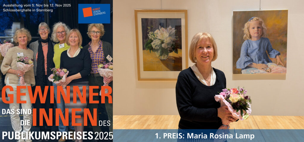 Während der Jahresausstellung des Kunstvereins Starnberg vom 6.-13. November 2024 mit dem Thema „Verrückte Zeiten“ wurden über eine Abstimmung der Besucher drei Publikumspreise vergeben. Ich freue mich, dass mir der zweite Preis zuteil wurde! Damit hatte ich nicht gerechnet, da meine Werke sehr „speziell sind. Es waren eines meiner neuesten Gemälde und eine Installation ausgestellt: Pygmalia und Galateo und Venus der Tüten.